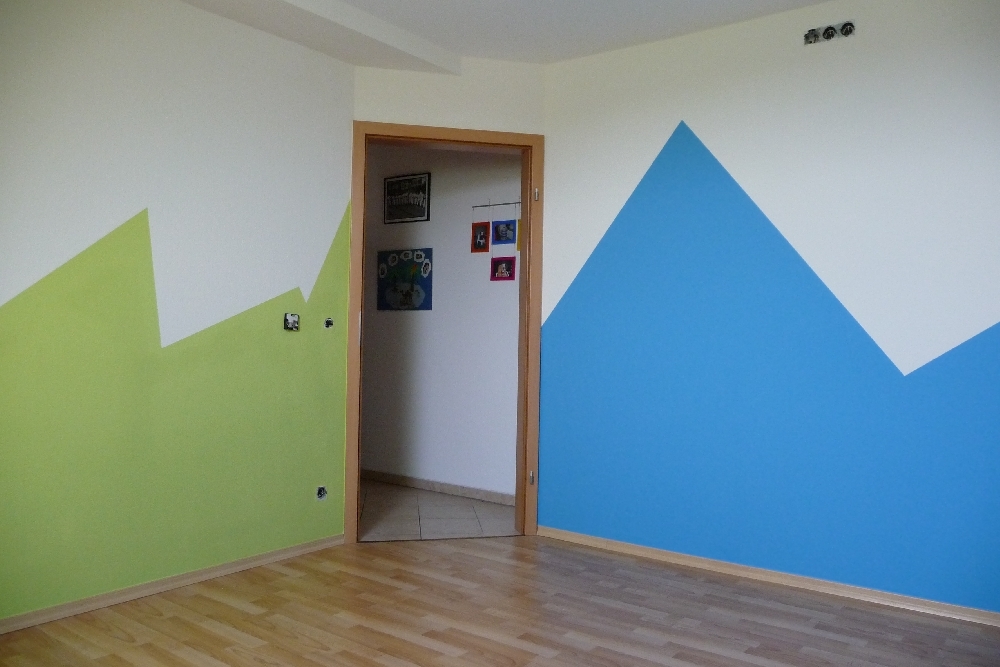 Gestaltung des Wandbereiches eines Kinderzimmers mit Dachschräge.