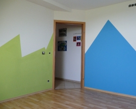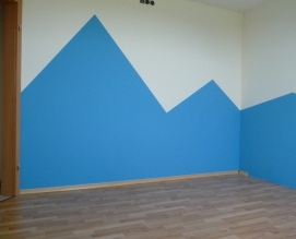 Gestaltung des Wandbereiches eines Kinderzimmers mit Dachschräge.