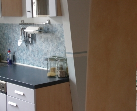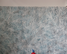 Gestaltung des Küchenspiegels mit Spachteltechnik auf Dispersionsbasis.