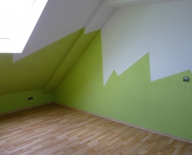 Gestaltung des Wandbereiches eines Kinderzimmers mit Dachschräge.