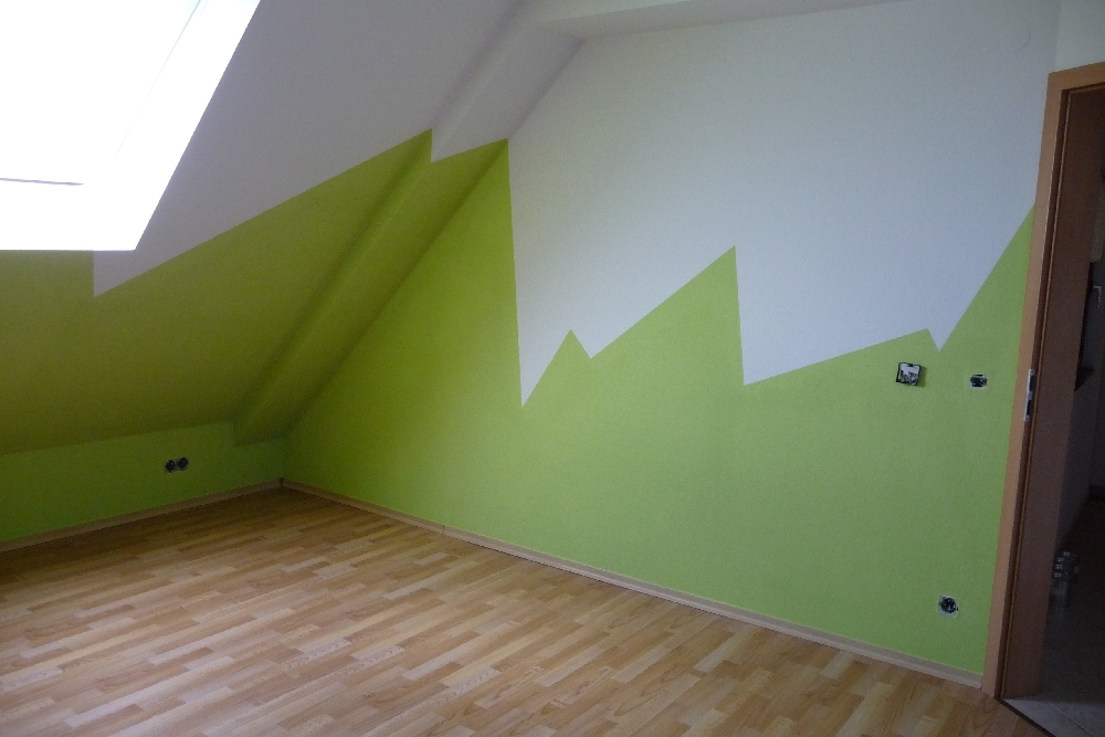 Gestaltung des Wandbereiches eines Kinderzimmers mit Dachschräge.
